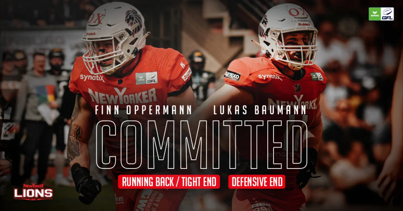 Mit dem vielseitig einsetzbaren Finn Oppermann und Defense Liner Lukas Baumann bleiben zwei weitere Leistungsträger auch 2025 Teil des Kaders der New Yorker Lions. Headcoach Troy Tomlin und Defensive Coordinator Dave Likins können somit weiterhin auf zwei wichtige Bausteine ihres Teams bauen.