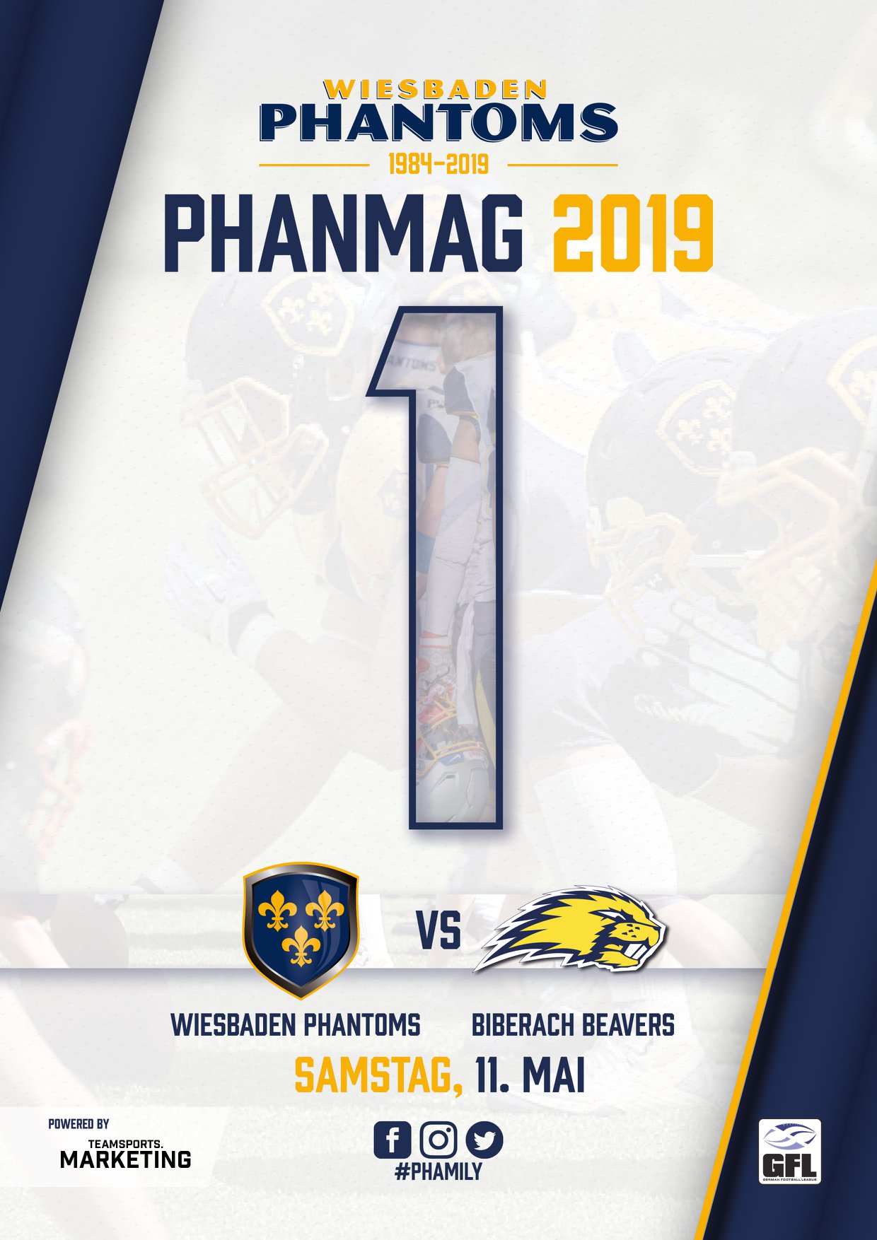 Das Team von Wiesbadens Head Coach Andy McMillan könnte die Punktebilanz gegen die Bieber direkt ausgleichen, bei einer Niederlage droht bereits ein großer Rückstand auf den Aufsteiger. Die Phantoms hoffen entsprechend auf lautstarke Unterstützung der Phans, die am Samstag auch das erste PhanMag im neuen Design von Teamsports.marketing in Händen halten. Produziert wurde das Magazin mit exklusivem Inhalt und Holly als „Cheer of the Game“ von Michel de l’Auriza fotografiert, wie in den vergangenen Jahren von der Münster druck design GmbH aus Oestrich-Winkel.