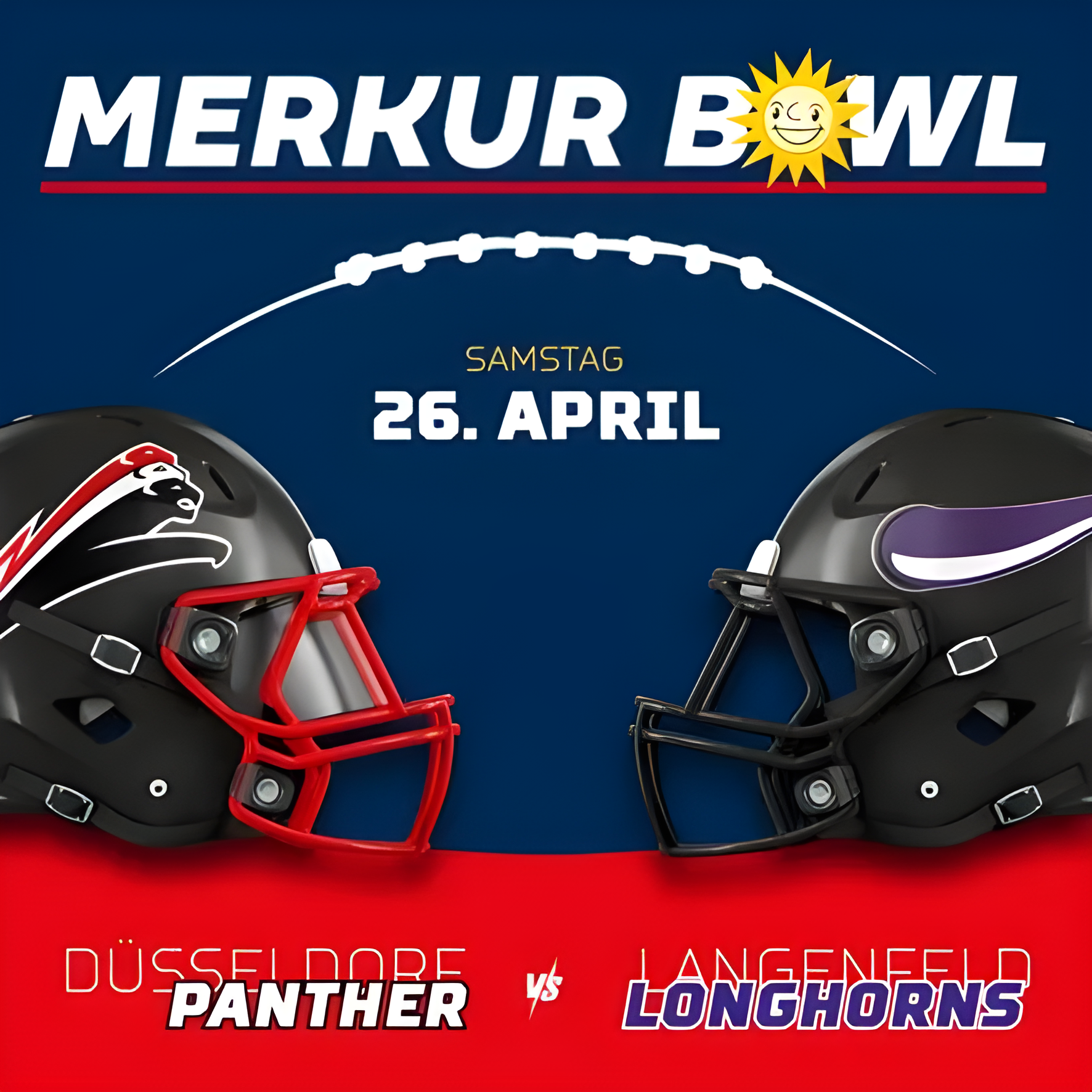 Aber nicht nur das Spiel hat Einiges zu bieten, auch rund um das Spiel haben die Düsseldorf Panther und ihr Partner Merkur Spiele einige tolle Aktionen geplant. Neben einem Tippspiel, bei dem ihr Dauerkarten für die Panther, Karten für das Merkur Game am 01.06.2025 in der Merkur Spiele Arena, Jerseys der Panther und vieles mehr gewinnen könnt, haben wir auch eine Field Goal Challenge, sowie Interviews mit spannenden Interview Gästen und Kinderattraktionen geplant.