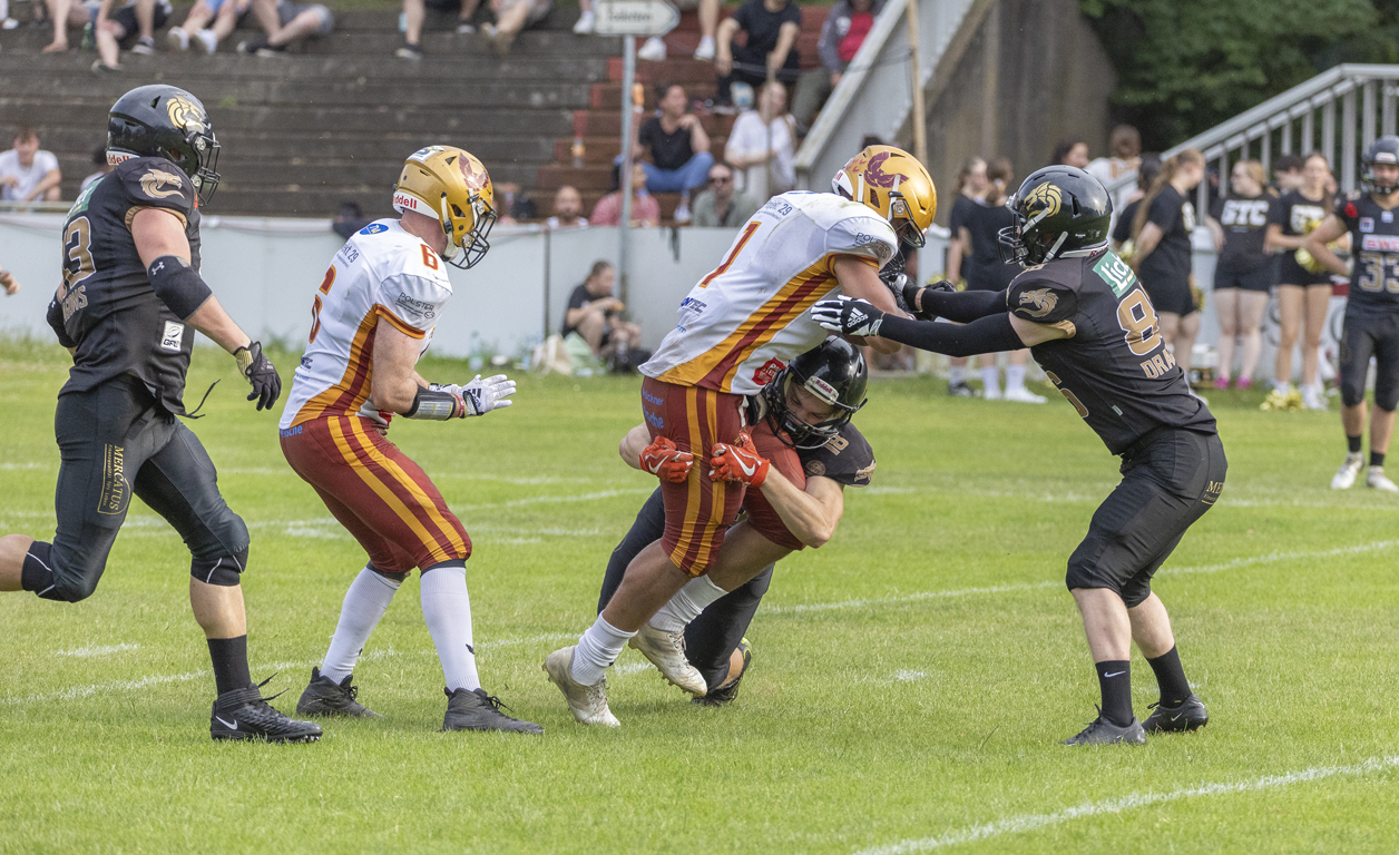 Beim Hinspiel konnten die Regensburger das Spiel nur knapp mit 14:10 für sich entscheiden. Während die Defense lediglich ein Field Goal zugelassen hat (und das Special Team einen Return Touchdown), war es dennoch eine knappe Kiste. Die Offense hat immer wieder Probleme gehabt Raumgewinn zu erzielen und Punkte zu machen. Am Ende reichte es für den Sieg, doch für das bevorstehende Rückspiel sind die Dragons kein leichtzunehmender Gegner.